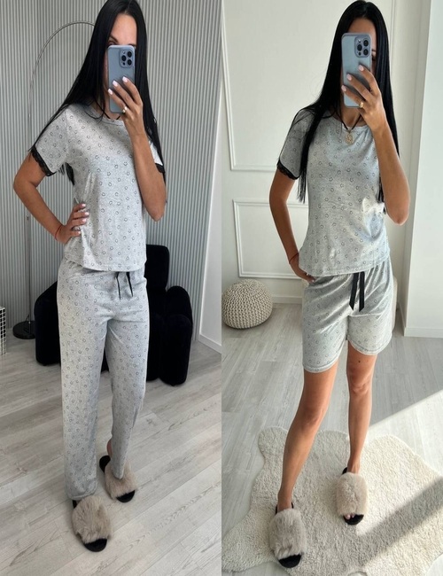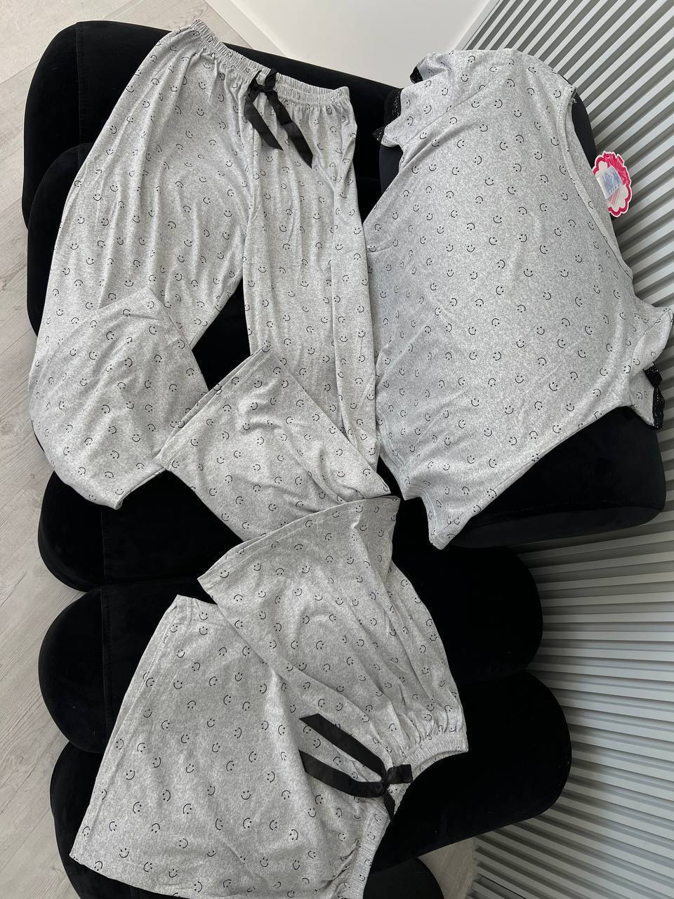 Піжама-трійка — це універсальний комплект, який дарує комфорт у будь-яку пору року. У наборі одразу шорти, штани та футболка, тому ти обираєш, у чому зручніше саме зараз. Тканина м’яка, приємна до тіла та не парить, ідеально підходить і для сну, і для дому, і для відпочинку.